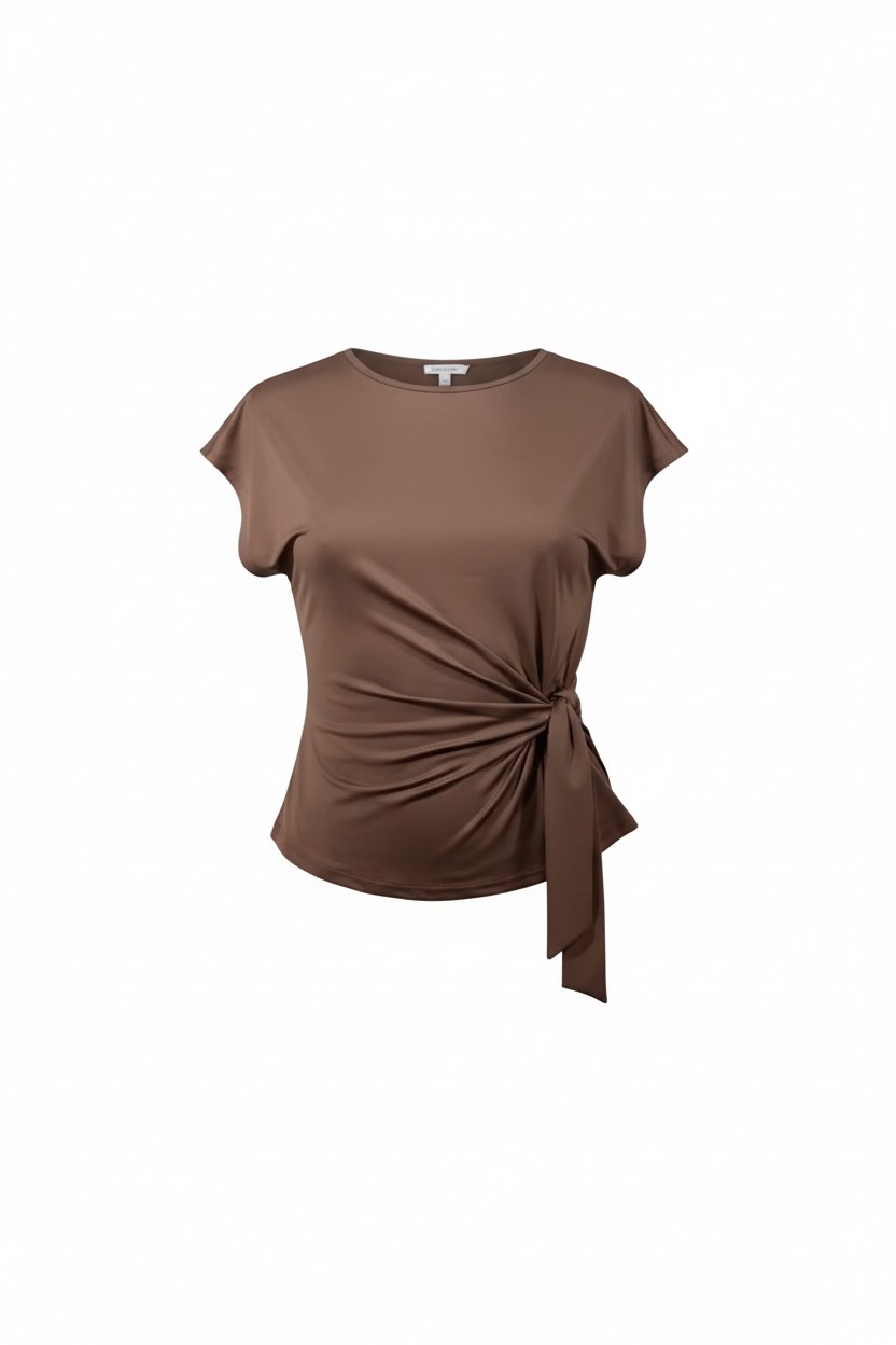 Camiseta de manga corta con lazo lateral inferior.