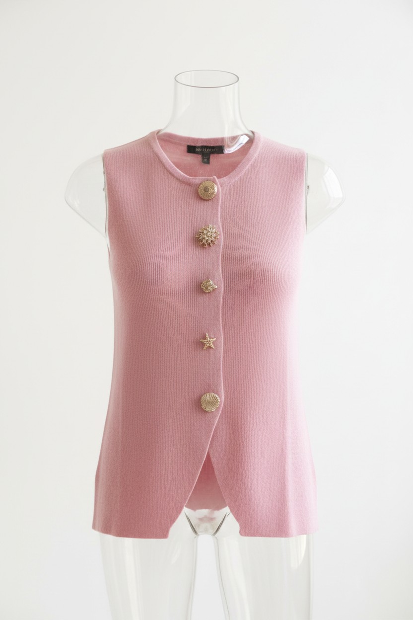 Chaleco punto fino botones decoración dorados
