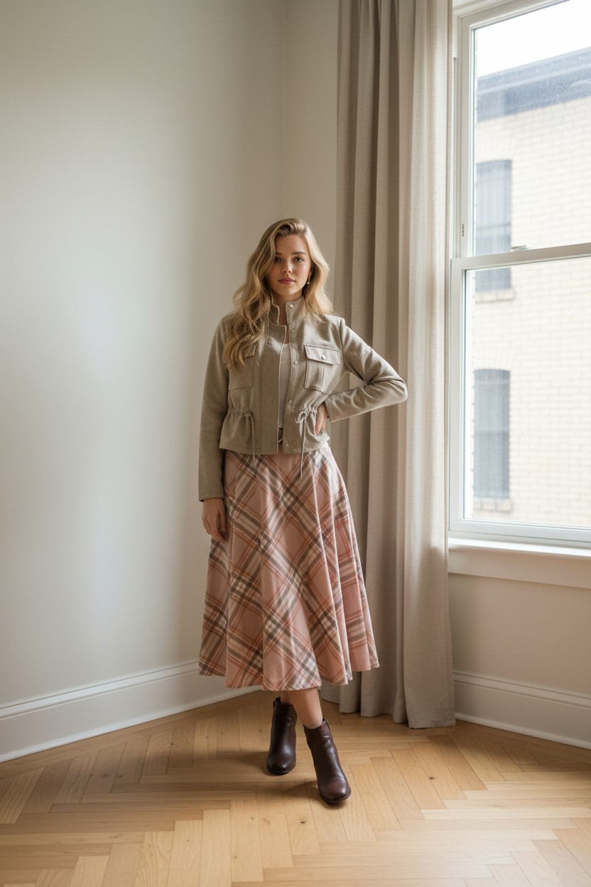 Chaqueta de ante con frunce mediante cordón en el mismo tejido en cintura, cierre con cremallera.