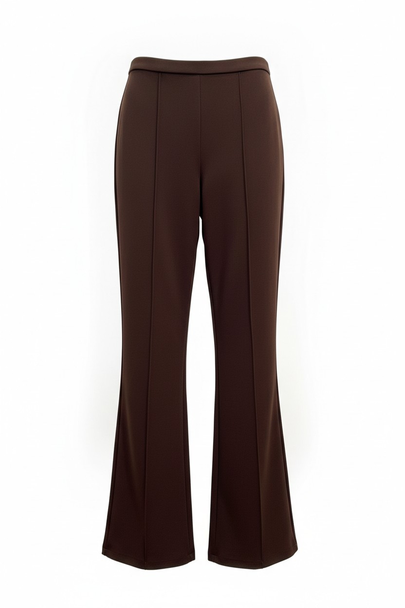 Pantalon estrecho de campana, tiene una cremallera invisible lateral.